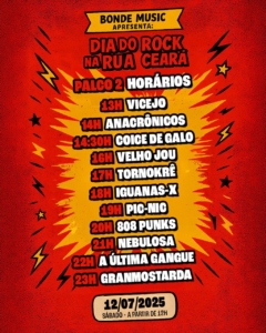 No dia 12 de julho de 2025 (sábado), a partir das 12h, a Rua Ceará, na Praça da Bandeira (RJ), receberá uma grande celebração cultural e musical com a realização do Dia do Rock na Rua Ceará. O evento gratuito integra as ações do projeto O Berço do Rock Alternativo Carioca, recém-reconhecido como Ponto de Cultura pela Rede Cultura Viva, do Ministério da Cultura.