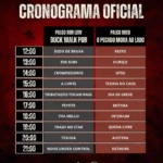 O cronograma oficial do evento está disponível no Instagram da página Agenda Rock RJ, que oferecerá ainda notificações via WhatsApp para avisar a todos que se inscreverem no grupo do evento sobre o início de cada show.