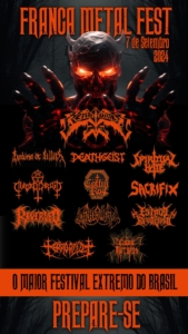 Em outras notícias, o DIABÁLLEIN confirmou presença recentemente na mais nova edição do ‘Franca Metal Fest’, que acontecerá no dia 07/10/2024, no Espaço Lagoa em Franca/SP, e contará também com nomes como Headhunter D.C., Deathgeist, Luxúria de Lillith, Spiritual Hate e MUITO mais. Confira abaixo o cartaz provisório e serviço completo para mais informações: