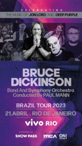 Em abril de 2023, o lendário frontman do Iron Maiden, Bruce Dickinson irá retornar ao Brasil, mas não com o Iron Maiden, mas capitaneando um Projeto incrível, que irá homenagear a música de ninguém mais, ninguém menos do que Jon Lord, fundador de uma das maiores bandas de Rock/Metal do mundo, o Deep Purple. Acompanhando o lendário vocalista, teremos uma banda e uma Orquestra, com mais de 80 instrumentos, para deixar ainda maior essa passagem pelo Brasil, que irá contar com shows no Rio de Janeiro, São Paulo, Curitiba e Porto Alegre.