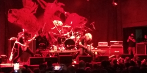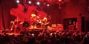 Antes dos shows começarem, o DJ convidado para a noite foi o lendário Angelo Arede, também conhecido como Zé Pilintra do Gangrena Gasosa, o vocalista e o camarada querido detonou vários clássicos do nosso cenário, mantendo o público entretido até a entrada do Dorsal Atlântica, que ocorreu exatamente conforme programado, 21:00h em ponto, Carlos Lopes(Guitarra e Vocal), Bráulio Drummond(bateria) e Alexandre Castellan(baixo) subiram ao lendário palco do Circo e em 1 hora e meia deram aula de um Thrash Metal/Punk/Hardcore raivoso e que mostrou bem o porquê eles existem e seu local na história. Um show incrível, com músicas do mais recente disco Pandemia, algumas do álbum Canudos e 3 clássicos no final da noite foram executados por Carlos Lopes e sua trupe, sendo eles Vorkuta, Caçador da Noite, Metal Desunido e Guerrilha. Sendo que, como o conteúdo das letras da Dorsal Atlântica são completamente políticas e tem um lado correto, o show da Dorsal também serviu como um “alento” para as almas mais preocupadas com o futuro de nosso país, já que, em diversas vezes, frases como HEY BOLSONARO, VAI TOMAR NO C*** e outros gritos contra a atual Presidência Republicana foram entoados, do palco Carlos Lopes bradava com força pelo peito que o Brasil tinha uma solução e ela tinha nome, qual vocês acham que foi o nome dito pelo Sr. Lopes?? Preciso mesmo dizer?? Nesse momento, muitos vieram abaixo, berrando LULA, LULA, foi catártico, pra quem é dessa tendência e visão mundial, para quem não é, possivelmente teve uma aula de história e posicionamento do Underground, pelo menos. Senhor show, banda ímpar em palco, mesmo Carlos Lopes, que agora só usa a Guitarra Bahiana em palco(sim, um “cavaquinho elétrico”, digamos assim), fica visualmente estranho, provavelmente a falta de costume de ver uma guitarrinha daquele “tamanico” em palco, o som até que ficou muito bom e o primeiro show deles valeu a pena.