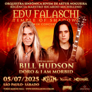No dia 5 de julho de 2025, São Paulo será palco de um dos eventos mais impactantes da história do heavy metal nacional. Entre as participações mais aguardadas está o guitarrista brasileiro Bill Hudson, conhecido internacionalmente por seu trabalho com Doro, I Am Morbid, NorthTale, Savatage e Trans Siberian Orchestra, além de sua carreira de destaque na cena do metal mundial.