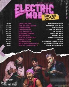 “Tome tento que a caravana fulminante do Electric Mob tá a mil por hora! O motivo? Turnê do aclamado segundo álbum ‘2 Make U Cry & Dance’ – que vem sendo apontado entre os melhores álbuns de rock do ano (legal ou sim?). Não seja bocó. Cole com o Electric Mob que o baile vai ser do bão!”, diz a banda no texto de divulgação do giro.