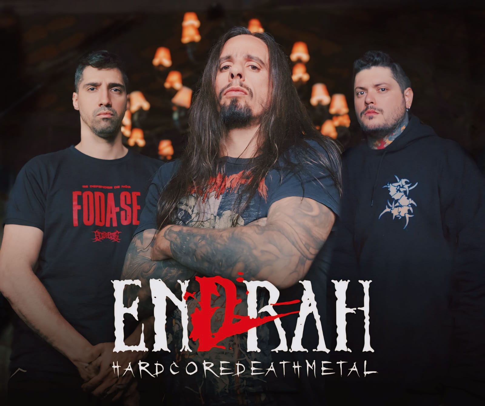 A banda peso-pesado paulista de Hardcore/Death Metal, Endrah, anuncia uma nova fase com a saída do vocalista americano Relentless, consolidando-se agora como um trio totalmente radicado no país. Com César ‘Covero’ (guitarra/vocal) e Adriano ‘Kardec’ Vilela (baixo/vocal) dividindo os vocais, juntamente com Bruno Santin (bateria), a banda promete um som ainda mais brutal, violento e visceral.