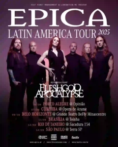 A aclamada banda holandesa de metal sinfônico Epica volta à América Latina em setembro de 2025 com 13 datas, sendo seis shows no Brasil, com realização da Liberation Music Company.