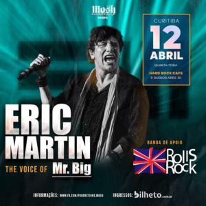 A última visita de Eric Martin a Curitiba aconteceu em 2010, portanto, esta apresentação é uma oportunidade imperdível que celebrar o legado de uma das mais importantes vozes do hard rock mundial, que embalou tantas gerações e ultrapassou as barreiras estilísticas, chegando ao mainstream no país – a balada “Wild World” (original de Cat Stevens) integrou a trilha sonora da novela Sonho Meu, da Rede Globo, e foi um grande sucesso. Outro single, “Just Take My Heart”, seguiu caminho similar.