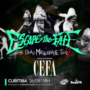 As três datas do Escape The Fate no Brasil contarão com shows de abertura. Em Curitiba a banda responsável por dar início aos trabalhos será a Cefa.