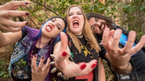 Após o álbum “Cenas Brutais” (2021), o trio de crossover/thrash metal Eskröta, que conta com Yasmin Amaral (vocal e guitarra), Tamyris Leopoldo (baixo e backing vocals) e Jhon França (bateria), apresenta o novo EP, “T3RROR“, já disponível nas plataformas de streaming e na versão física por meio dos selos Marquee Records e Voice Music. O material, produzido pela banda e Daniel Pacheco, com coprodução das vozes e bateria a cargo de Diego Rocha, conta com uma temática voltada ao universo do terror/horror. “‘Filha do Satanás’, uma das faixas de ‘Cenas Brutais’, que teve participação do vocalista Hugo Golon (Cemitério), fala sobre o filme ‘Carrie, a Estranha’ (1976). Como o público gostou muito da nossa composição nessa temática, decidimos entregar mais músicas sobre este universo do terror/horror, mesmo porque também somos muito fãs de filmes e álbuns de terror. Afinal, o heavy metal mesmo começou com Black Sabbath, banda que teve seu nome extraído por um filme do gênero e, ano passado, tivemos o lançamento do documentário ‘The History of Metal and Horror’, de Mike Schiff“, explicou Yasmin Amaral.