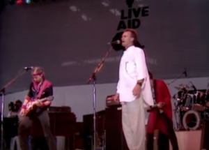 O “Live Aid”, que foi realizado em 13 de julho de 1985, foi idealizado e organizado por Bob Geldof e Midge Ure com o objetivo de arrecadar fundos a fim de erradicar com a fome na Etiópia no Continente Africano. Os concertos foram realizados no Wembley Stadium em Londres (para um publico de aproximadamente 82 000 pessoas) e no John F. Kennedy Stadium na Filadélfia (com aproximadamente 99 000 pessoas).
