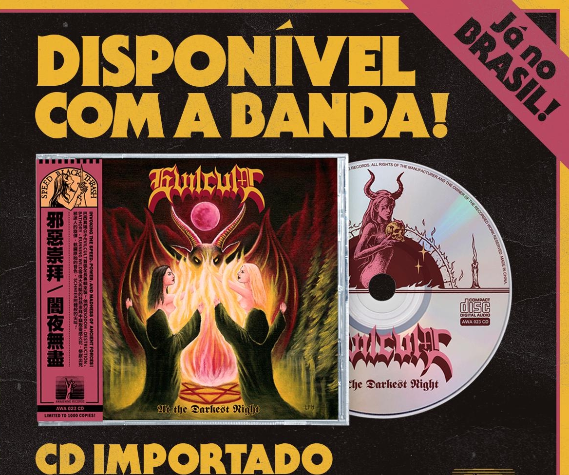 Já está disponível no Brasil o debut da banda gaúcha EVILCULT, intitulado “At the Darkest Night”, lançado na China através da gravadora Awakening Records, limitado em 1000 cópias. O CD é importado da China e vem com OBI e booklet de 12 páginas, e pode ser adquirido diretamente com a banda, com o valor R$ 35 + R$ 15 fixo de frete para todo o país. Preço especial no atacado para selos, lojas e distros (envio sem caixinha acrílica). Os CDs podem ser adquiridos diretamente com a banda através do Facebook, Instagram ou e-mail (lucasevilcult@gmail.com) por meio de depósito / transferência bancária, ou no cartão de crédito pela loja virtual (https://evilcult.loja2.com.br).