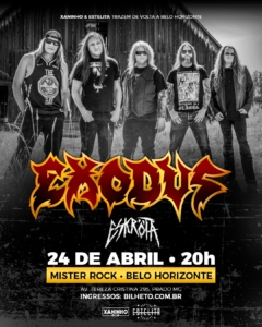 A perseverança e popularização do thrash metal ao redor do globo, há mais de quatro décadas, necessariamente pela banda norte-americana Exodus, de San Francisco, Califórnia, que está de volta ao Brasil em abril de 2024. A Xaninho, em parceria com a Estelita, realizam duas datas da turnê: dia 22/04 em Curitiba/PR (CWB Hall) e dia 24/04 em Belo Horizonte/MG (Mister Rock).