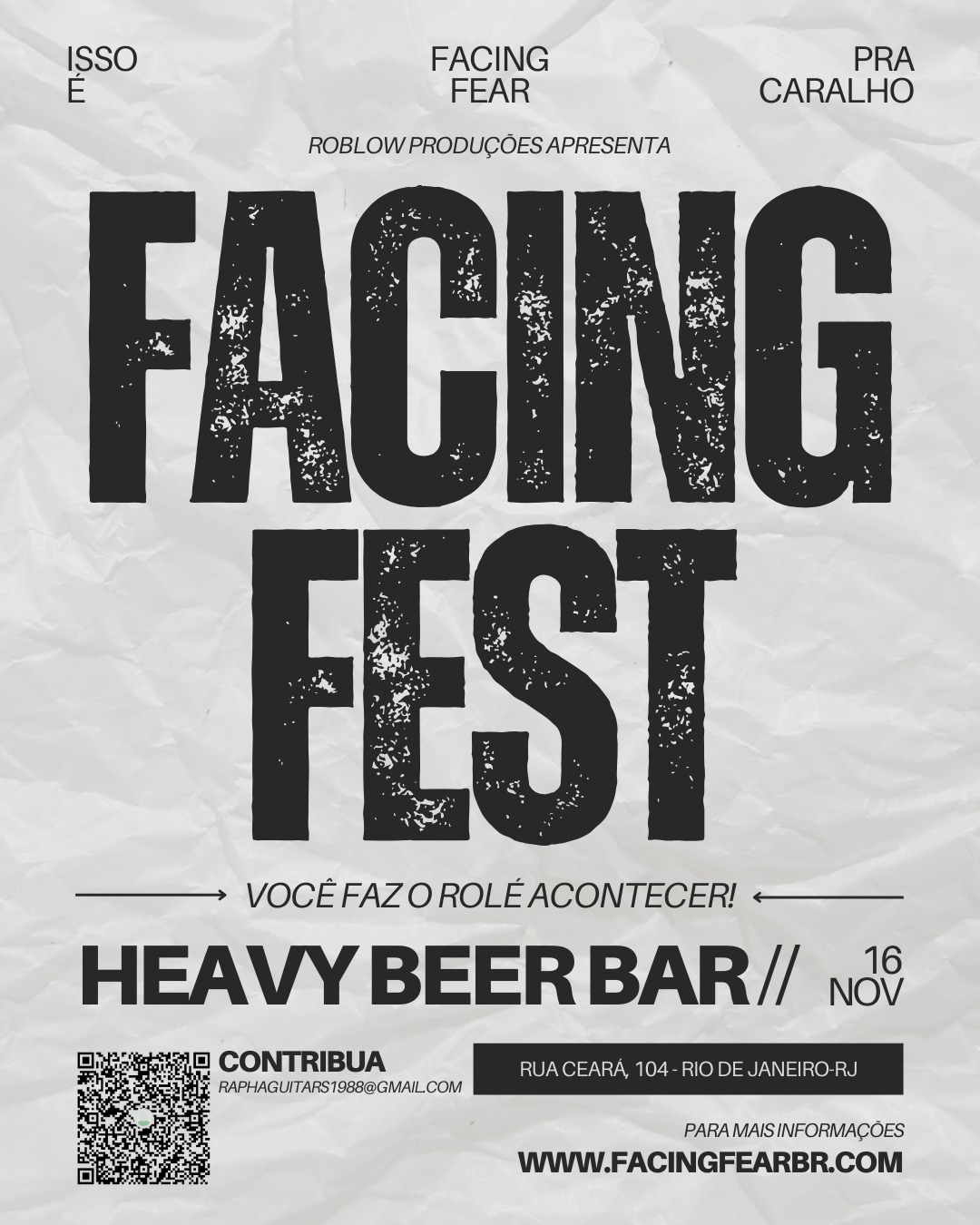 O Facing Fest chega com sua segunda edição ao Heavy Beer Bar, na Praça da Bandeira (RJ), no dia 16 de novembro, para celebrar o Metal Underground do RJ, em uma noite dedicada ao espírito de comunhão do Metal. Com a proposta de contribuição voluntária, o evento oferece aos fãs a chance de decidirem quanto desejam investir para apoiar a cena.