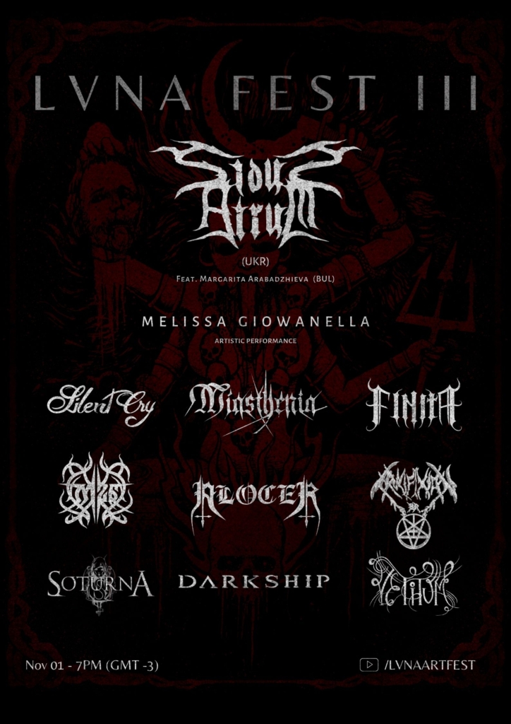 Ao lado do FINITA estarão as bandas Sidus Atrum (Ucrânia), Alocer, Crucifixion BR, Darkship, M26, Miasthenia, Silent Cry, Soturna, Vetitum e Melissa Giowanella (performance artística). O LVNA Art nasceu em fevereiro de 2020, através de uma primeira edição de festival, que aconteceu em Curitiba/PR. Depois do primeiro festival, surgiu o espaço virtual onde encontram-se divulgações de bandas, artistas em suas mais variadas vertentes, playlists e muito mais, tudo isso sempre com foco em exaltar a potência feminina no metal pesado nacional e internacional. Após o sucesso da segunda edição, que já conta com mais de 2200 visualizações no YouTube, surgiu a ideia da próxima edição, que novamente acontecerá de forma online e terá a participação de bandas que transitam entre o Doom, Gothic e Black Metal. Para além de alguns desses estilos entendidos como majoritariamente masculinos, o festival busca visibilizar as bandas com mulheres na formação, mostrando que nesse meio também existem artistas mulheres que produzem materiais de grande qualidade.