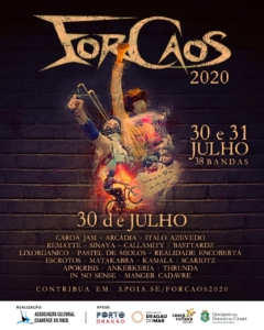 O ForCaos 2020 já está acontecendo neste final de junho e, este ano, como a maioria dos festivais, terá apenas apresentações online. Nesta edição, 40 bandas de diversos locais do país se apresentarão nos palcos virtuais do festival cearense. O novo formato se deu por conta da pandemia, da covid-19. Além das apresentações musicais, o evento promove o I Ciclo formativo de Oficinas pensado como atividade integrante do evento. São ações voltadas para o público que trabalha, sobrevive ou pretende se inserir no universo musical. Os esportes radicais foram contemplados na programação com um painel composto de nomes do BMX nacional e internacional em tempos de pandemia (dia 29 de julho). O festival, que começou neste 29 de julho e vai até 1 de agosto, será transmitido no Youtube no Canal ForCaos TV. As oficinas e o a live da banda Krenak são uma parceria com o Centro Cultural Belchior. Outros parceiros importantes é a Secult-CE e o Porto Dragão, que transmitirão os 38 shows em sua plataforma. Os horários de cada atração ainda não foram divulgados.