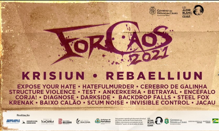 Para compor o line-up deste ano, a organização do ForCaos, realizou edital de chamada pública para selecionar as atrações. Foram recebidas 189 inscrições de bandas cearenses e de outras regiões do País. O festival tem como headline as bandas Krisiun e Rebaellium. As apresentações das bandas locais serão realizadas no Centro Cultural Belchior nos dias 19 e 20 de março. Além de música, o ForCaos realizará debates, oficinas e campeonato de BMX. Confira as bandas selecionadas.