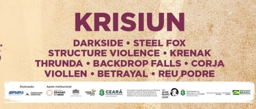 O ForCaos 2021 foi contemplado pelo “Edital Festivais Culturais” da Lei Aldir Blanc promovido pela Secretaria da Cultura do Estado do Ceará e é realização da Jolson Produções Artísticas e Associação Cultural Cearense do Rock. Apoio institucional: Instituto Dragão do Mar e Theatro José de Alencar.