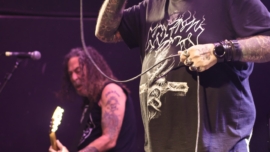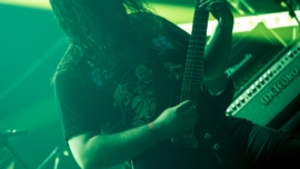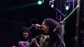 “Não estou ouvindo nada de retorno de guitarra, nada!” — assim começou o terceiro e último dia, com a dupla Violated Rotten Tombs. Com um set de death grind splatter, mesmo com o tempo reduzido, empolgaram a galera que chegava e já se jogava no mosh.