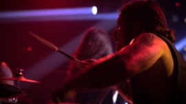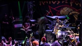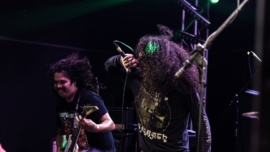 De longe, o mais experimental da noite foi o Sangue de Bode. Misturando black metal com elementos de rap, entregaram um show intenso e performático. O público foi sendo “engolido” pelo som da banda, como num ritual de possessão.