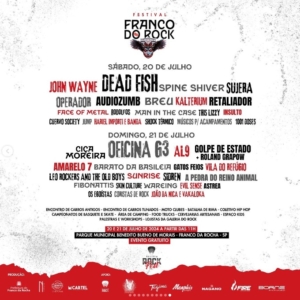 O Franco do Rock em parceria com o Galeria Rock Fest será um evento gratuito realizado nos dias 20 e 21 de julho na cidade de Franco da Rocha (SP). A produção confirmou as bandas Dead Fish e Oficina G3, além dos artistas Roland Grapow e Ciça Moreira no line-up.