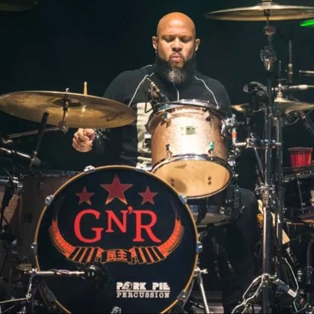 Frank se juntou ao GnR durante um show em 2006 e ajudou a manter o ritmo durante as turnês subsequentes, incluindo suas recentes com o trio “Axl Rose, Slash e Duff McKagan reunido.
