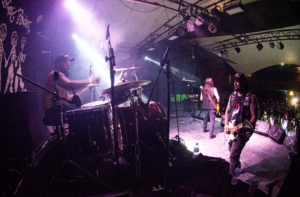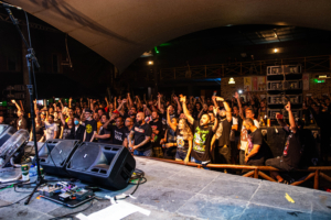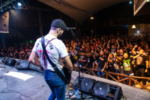 Outra relativamente nova foi “Mucha Policia, Poca Diversión“, dos bascos ESKORBUTO, regravada pelos GAROTOS em 2020. Ecoa um grito em meio à multidão. “fascistas não passarão”. E “Repressão policial” e “Anarquia Oi!” pareceram dar fim a festa.