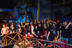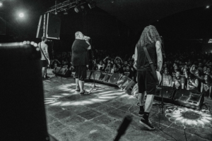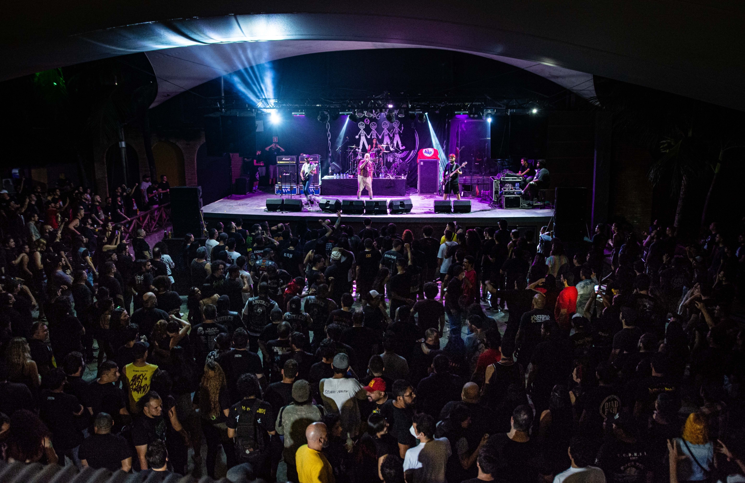 Agora, no Complexo Armazém, fãs da banda que talvez não tivessem nem nascido àquela época rodavam junto com veteranos do metal cearense, de “Morrer” até “Amazônia Nunca Mais“. De diferente da experiência de ouvir ao vivo aquele álbum ao vivo (a repetição aqui não é um erro), apenas a inclusão das novatas “Conflito Violento” (a mais nova de todas, lançada apenas em “Século sinistro”, 2014, o último álbum da banda), “Crocodila” (do “Carniceria Tropical“, de 1997) e “Suposicollor” (de “Just Another Crime in… Massacreland“, de 1993) e as ausências da homenagem ao OLHO SECO, “Que Vergonha“, de “V.C.D.M.S.A.” e “Cérebros Atômicos“.