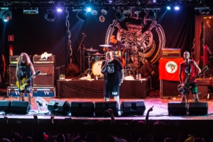Com letras antenadas com a realidade, sobre a violência em Fortaleza e a sujeira na política, por exemplo, a escolha do trio thrasheiro para abrir um show que ainda teria Garotos Podres e Ratos de Porão mostrou-se bastante acertada, especialmente quando em “Pigs Parliament“, Parlamento de Porcos, Bifão puxa um “PNC do Bolsonaro”, e complementa, “quem votou nele tem sangue nas mãos”. Musicalmente falando, a faixa, que dá nome ao mais recente álbum também entrega tudo o que o banger quer: velocidade (mas com aquela paradinha esperta), belo solo e som porrada. Relembrando antigos tempos, quando se chamava MERCENARIES, a banda também incluiu a faixa epônima no set. E não deixou de agradecer ao Fabrício, relembrando que é o primeiro grande evento no que Bifão chamou de pós-pandemia, mas não deixou de pontuar: “Ainda não acabou. Galera tem que continuar se cuidando”, mas refletiu: “depois de 2 anos. Tem que se abraçar. Isso e bom pra caralho”. Ainda rolou uma cover do TAURUS, “Mundo em Alerta“. Mais adequado, impossível. A banda foi ovacionada ainda no meio de “Blessed for What?“, a derradeira do show. Nada menos que o merecido.