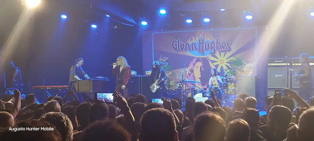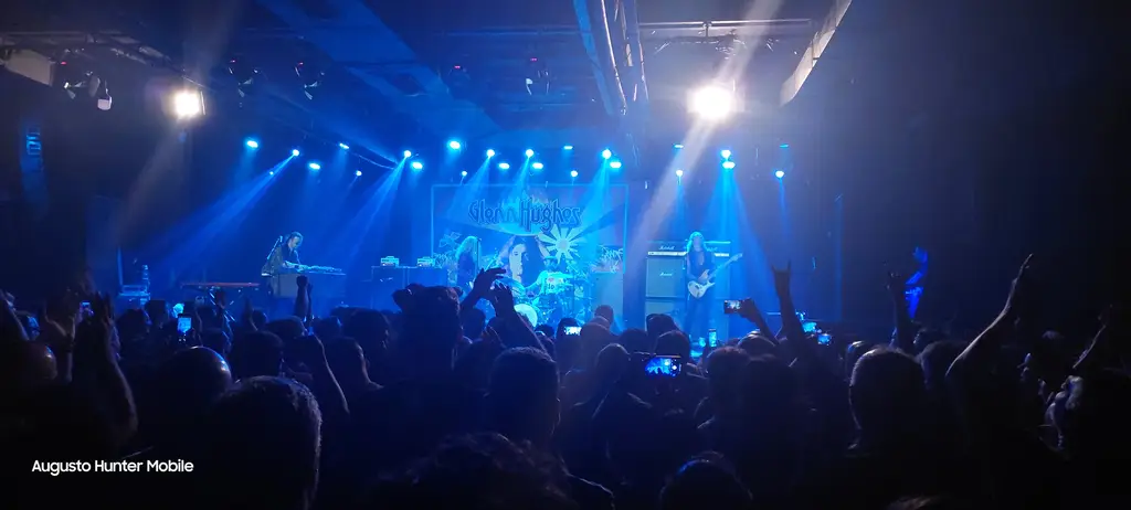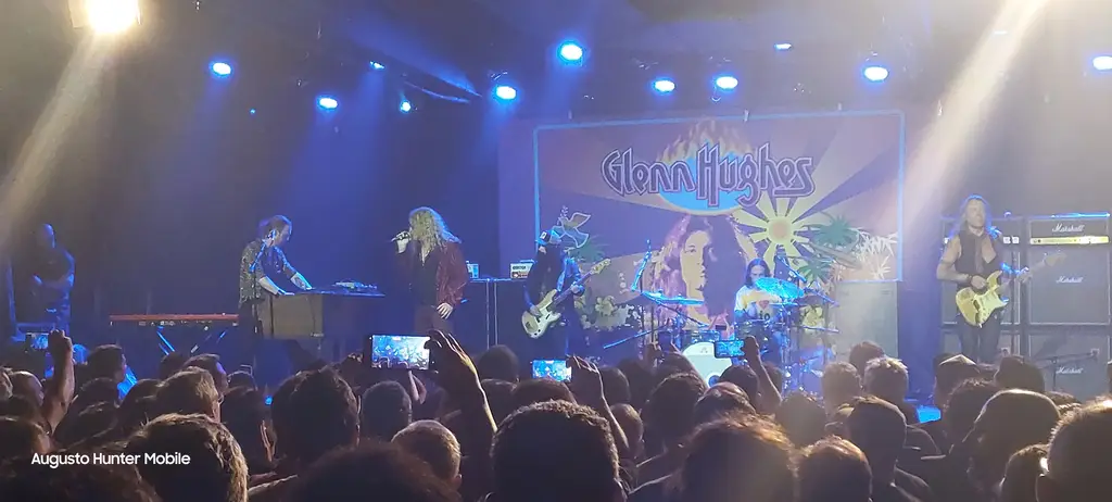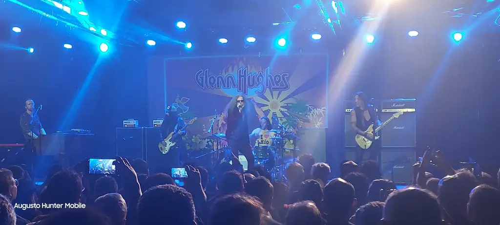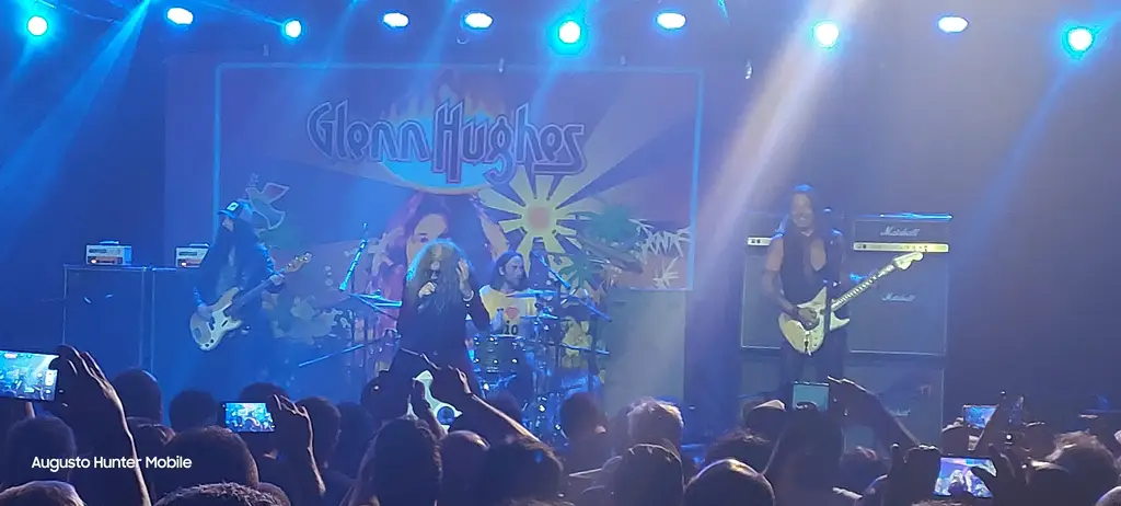 E começando na hora marcada, a banda entra em palco e Glenn Hughes começa o seu show com nada mais, nada menos do que Stormbringer, um dos grandes clássicos de sua antiga banda e o show seguiu com Might Just Take Your Life e toda a preocupação se foi embora, já que a voz de Glen Hughes estava “no talo, no ponto”, como ele está cantando, como ele tá incrível com a sua banda em palco e daí pela primeira vez o vocalista se comunica com o seu público, que foi muito bom e já estava completamente conectado com o vocalista. Um bom papo com a galera, brincadeiras aqui e ali e ele vem com Sail Away e You Fool No One, logo na sequência, o que foi um ponto no qual esticou e não foi pouco não, foi solo de guitarra, foi solo de bateria, foi parabéns pra você (já que foi aniversário do guitarrista Soren Anderssen) e mais firulas, até finalizar a música, não vou negar que, chegou um momento que aquilo tudo meio que me “encheu o saco”, mas valeu a pena, porquê depois disso tudo, Mistreated foi executada e vamos combinar, não tem como com um clássico desses, lindo.