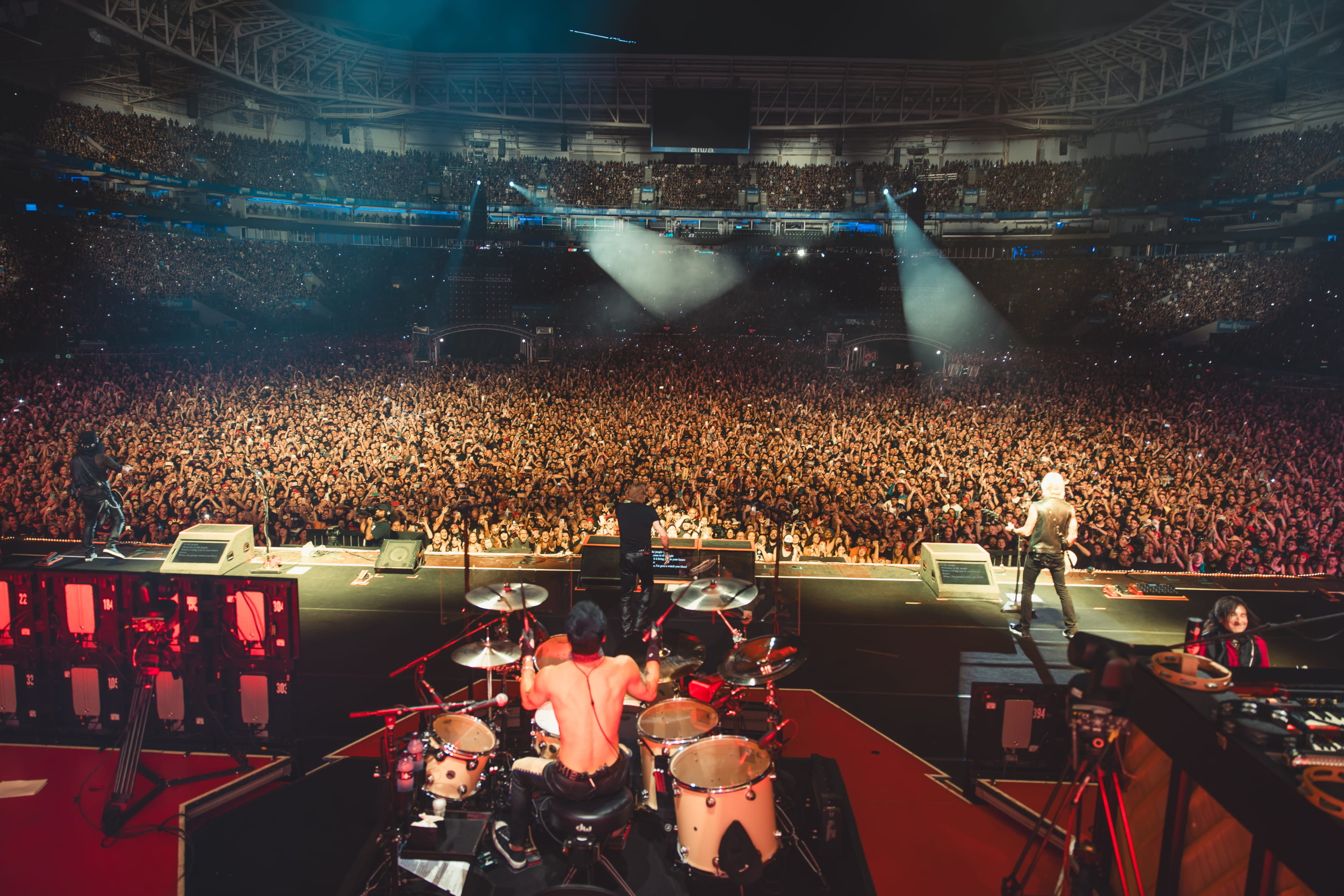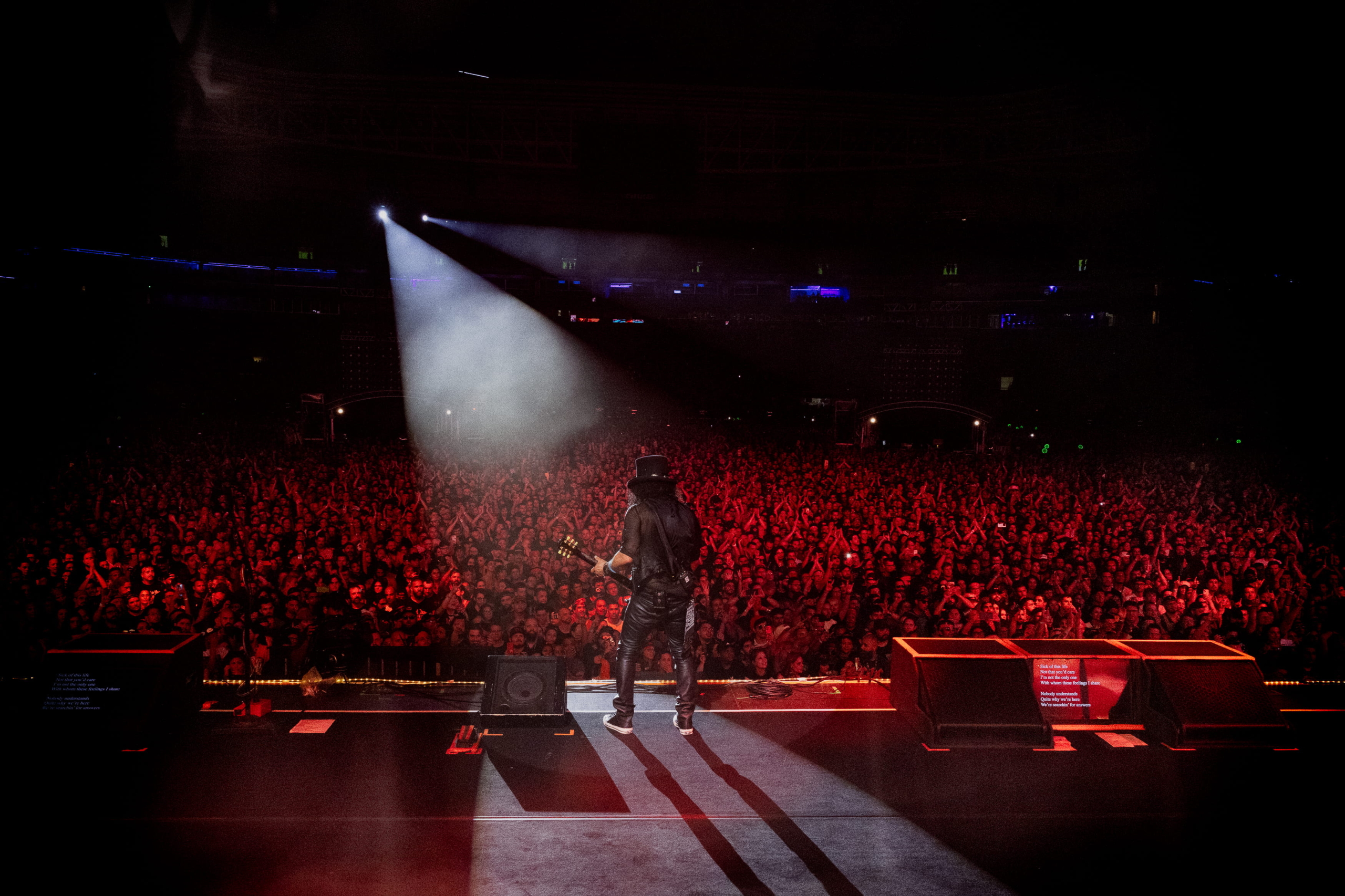 Por volta das 20:30, alguns vídeos começam a passar no telão; o (ainda) Allianz Parque começa a gritar como se não houvesse amanhã. Na verdade foram gritos, choro, uma felicidade desesperada por saber o que estava por vir. “You know where a fuckin’ you are?[…]” os primeiros acordes emendando o grito que já não era tão alto, tão forte, mas carregava toda a fúria do legado de uma banda que nunca desaprendeu o que dizer. “[…] You’re in the jungle, baby […]” e Welcome to the Jungle dá seus primeiros passos no palco com toda a audiência pulando. Pessoas da arquibancada diziam senti-la balançar. Essa é a força e o peso da história. Axl Rose não precisou se dar ao trabalho de cantar, os súditos saudaram seus reis de onde estavam.