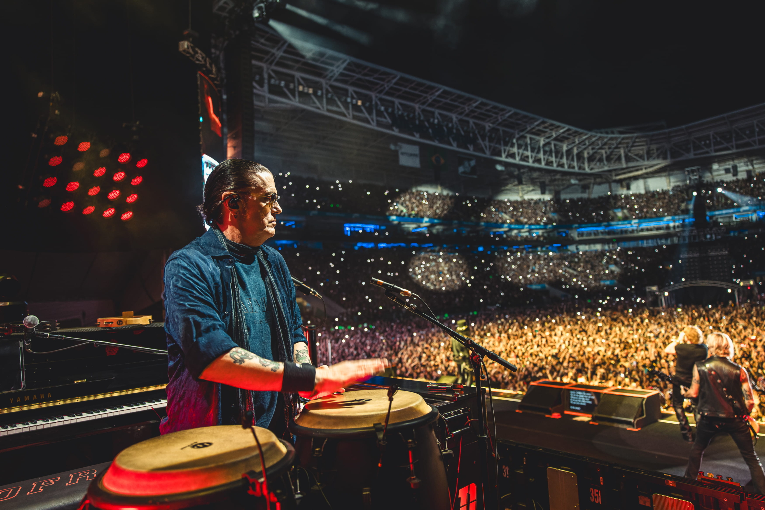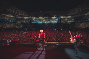 Mais uma troca de roupa e, sem perceber, o piano entra em cena. Bom, já sabemos o que esperar, né? November Rain. A chuva já tinha refrescado e resfriado parte do público, mas, além das luzes dos celulares, o céu pintava estrelas brilhantes e uma lua gigantesca para dar ares de obra de arte a essa carta romântica de despedida. O final do show se aproximava e, ao mesmo tempo que estávamos em êxtase pela experiência, o desespero de saber que o tempo estava acabando e 4 músicas, tradicionais em shows, faltavam, num lugar que só caberiam duas. E uma delas apareceu aqui, o apito do trem soou, e Nightrain começou. Pista e arquibancada unidas num só pulo, nem parecia que já havia passado mais de duas horas de show. E antes de começar aquela que encerra todo set, Axl brinca “where is Izzy?” e faz com que todos repitam que ninguém se importa. Paradise City trouxe o fim da festa e o apagar das luzes, junto com a catarse de um show incrível e a decepção de alguns por não poder abraçar seu par ao som de Patience e Don’t Cry.