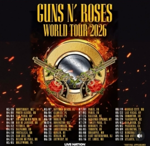 O Guns N’ Roses anuncia uma nova etapa da turnê “Because What You Want and What You Get Are Two Completely Different Things” no Brasil. Além de se apresentar no Monsters of Rock, no dia 4 de abril, no Allianz Parque, a banda confirmou mais oito shows em abril de 2026: 1/4, no Estádio Beira-Rio, em Porto Alegre; 7/4, no Centro Regional de Eventos, em São José do Rio Preto; 10/4, no Engenhão, no Rio de Janeiro; 12/4, no Estádio Estadual Kleber José de Andrade, em Vitória; 15/4, na Arena Fonte Nova, em Salvador; 18/4, na Arena Castelão, em Fortaleza; 21/4, no Estádio Governador João Castelo (Castelão), em São Luís; e 25/4, no Estádio Olímpico do Pará (Mangueirão), em Belém.