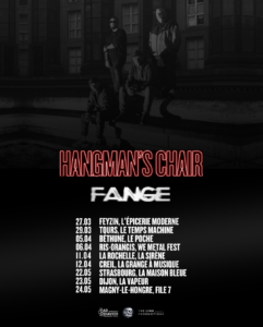 Surgida na cena musical parisiense em 2005, a HANGMAN’S CHAIR destaca-se como uma das mais singulares bandas de Doom Rock da atualidade. Ao longo de sua trajetória, o grupo forjou uma identidade sonora própria e inconfundível, amalgamando influências de gigantes como TYPE O NEGATIVE, LIFE OF AGONY e SISTERS OF MERCY, e temperando essa mistura com a autenticidade crua herdada de suas raízes no hardcore.