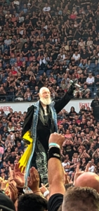 Abriram com “Panic Attack”, faixa nova que já soa como clássico. Emendaram com “You’ve Got Another Thing Comin’”, “Lightning Strike”, “The Sentinel” e o hino “Turbo Lover”. E aí veio aquele momento que me pegou no coração: “A Touch of Evil”. Assim que começaram os primeiros acordes, me arrepiei inteira. É a minha música favorita da banda, e ouvi-la ao vivo foi surreal — aquela intro hipnótica, os vocais sombrios de Halford e a intensidade crescente me deixaram com os olhos marejados. Foi um dos momentos mais emocionantes da noite, impossível não se deixar levar.