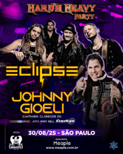 Ingressos antecipados: https://meaple.com.br/hardnheavy/hnh-party-apresenta-eclipse-johnny-gioeli
