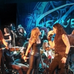 Como não ficar boquiaberto com a grandiosamente de uma orquestra, coro e banda de metal juntos? Toda a ambiência já apareceu na excelente introdução Tempus, que trouxe à tona os elementos que nos esperiam no restante do show. Dali, em diante o que pudemos presenciar foi uma grande e histórica apresentação de heavy metal. Ora, passando pelo metal sinfônico, ora pelo power metal, a banda transitou com maestria por diferentes vertentes entregando ao espectador tudo aquilo que ele esperava e muito mais. Já na segunda música, Sirens of the Past, Zema apresentou toda a sua versatilidade vocal. General of Peace e Drowning Land seguiram na mesma pegada pesada com melodias marcantes. Destaco ainda os sopros e coro que me chamaram a atenção, e os refrões fortes onde o contraste dos vocais com drive e os líricos altos não deixavam a platéia piscar. Músicas como The Color of Injustice, Wall of Shame, Master of Streets não podiam faltar, deixando o setlist ainda mais arrebatador.