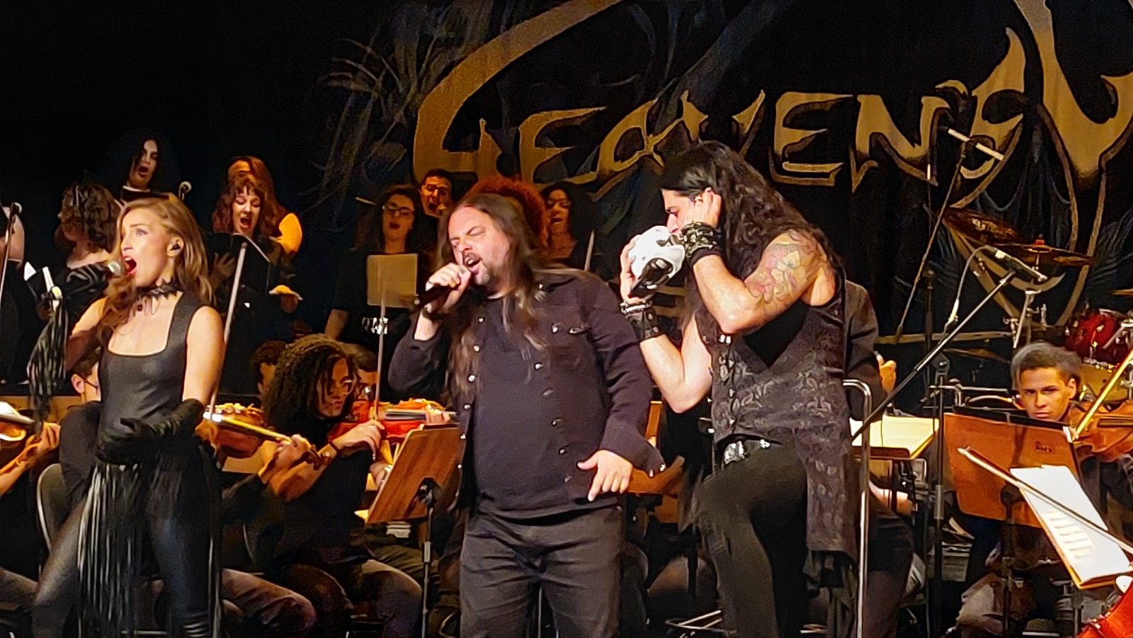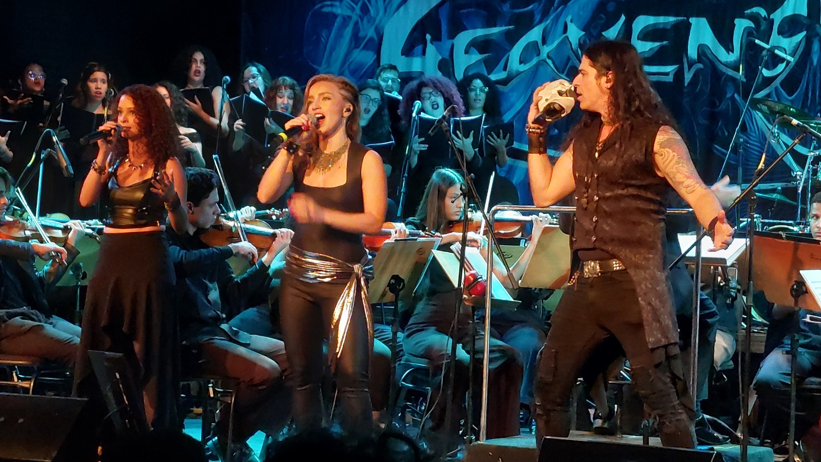 Como não ficar boquiaberto com a grandiosamente de uma orquestra, coro e banda de metal juntos? Toda a ambiência já apareceu na excelente introdução Tempus, que trouxe à tona os elementos que nos esperiam no restante do show. Dali, em diante o que pudemos presenciar foi uma grande e histórica apresentação de heavy metal. Ora, passando pelo metal sinfônico, ora pelo power metal, a banda transitou com maestria por diferentes vertentes entregando ao espectador tudo aquilo que ele esperava e muito mais. Já na segunda música, Sirens of the Past, Zema apresentou toda a sua versatilidade vocal. General of Peace e Drowning Land seguiram na mesma pegada pesada com melodias marcantes. Destaco ainda os sopros e coro que me chamaram a atenção, e os refrões fortes onde o contraste dos vocais com drive e os líricos altos não deixavam a platéia piscar. Músicas como The Color of Injustice, Wall of Shame, Master of Streets não podiam faltar, deixando o setlist ainda mais arrebatador.