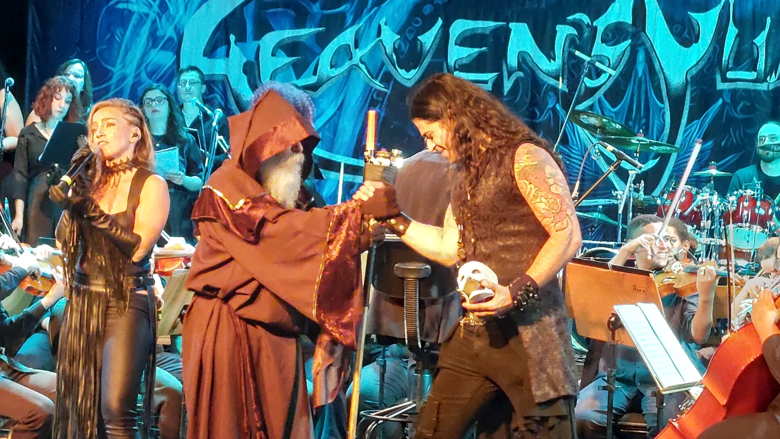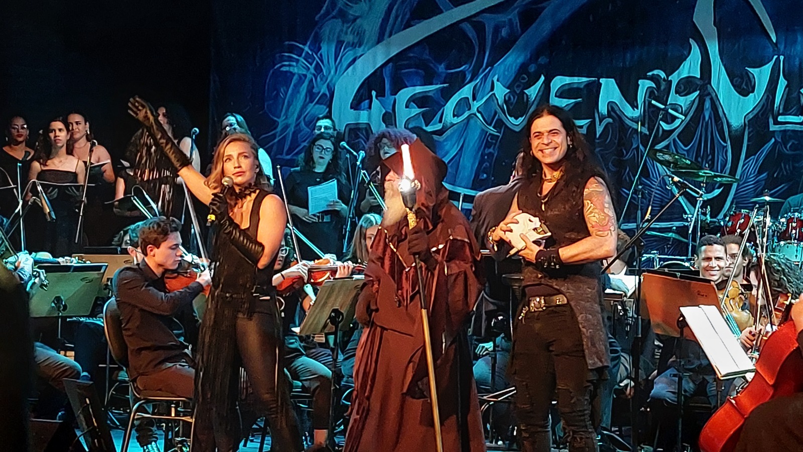 O que esperar da turnê de um álbum tão imponente? Para a Chronos Tour, a Heaven´s Guardian preparou concertos a altura. O que vimos na noite de quinta-feira (27/06/24) no Rio de Janeiro foi algo inédito no país; A banda tocou o álbum quase na íntegra (faltou apenas The Fall of The Empire), se apresentando ao lado da Orquestra Sinfônica Jovem e do Coro Sinfônico Jovem de Goiás, e ainda contou com algumas participações mais que especiais. Felizmente para todos os presentes, o batera Francis que não pode participar da turnê, foi substituído por Daniel Moscardini impecável nas baquetas. Com um setlist matador, e dezenas de músicos no palco, a banda não decepcionou seus fãs, entregando um show ao mesmo tempo agressivo e melódico, no padrão das melhores apresentações de metal sinfônico do planeta.