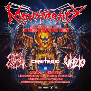 Um dos grandes nomes do Death Metal mundial, o Monstrosity fará uma tour Sul Americana com um Setlist especial, celebrando os 30 anos de “Imperial Doom”. A turnê passará por Chile, Peru, Colômbia e Brasil. Por aqui eles farão uma única data, em SP, no dia 24/03 (sábado), no Hangar 110 (Rua Rodolfo Miranda, nº 110 – Bom Retiro). Além dos americanos, se apresentam as bandas Corpse Grinder (MG), Cemitério (SP) e Vazio (SP).