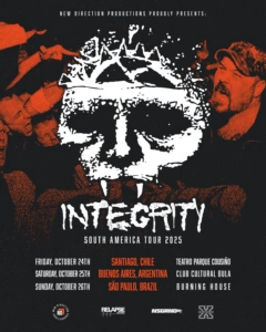 A tão esperada vinda do Integrity ao Brasil, parte de uma mini-turnê sul-americana com Chile (24/08) e Argentina (25/04) também na rota, é da ND Productions, que em 2025 já trouxe aos Trópicos o Earth Crisis, outra lenda do hardcore/metal.