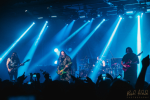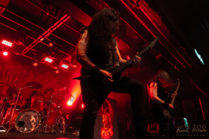 Com um cenário de palco inspirado na capa de Mortem a banda iniciou sua apresentação detonando os clássicos Kings of Killing e Ravanger. Para então falar sobre o novo álbum e apresentar “Swords Into Flesh” pela primeira vez ao vivo. Ao todo tocaram 3 músicas do novo petardo, que funcionaram muito bem ao vivo.