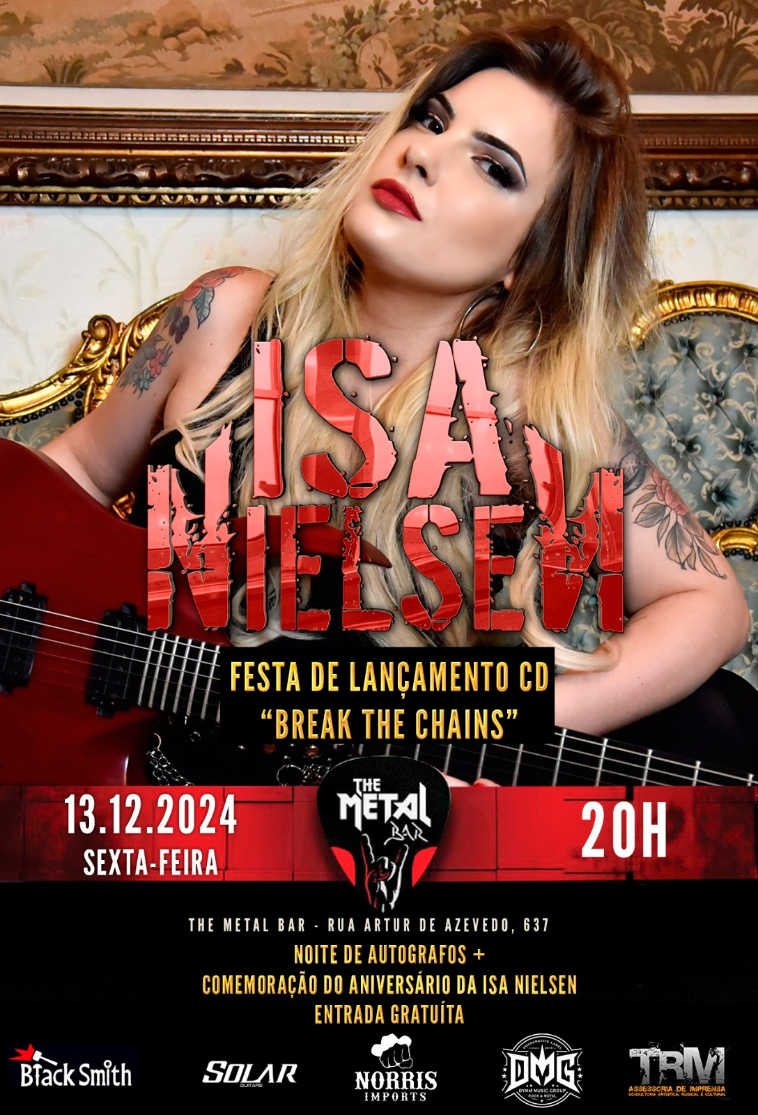 A guitarrista e cantora brasileira-dinamarquesa Isa Nielsen anuncia o lançamento de seu primeiro álbum solo, “Break the Chains”, disponível a partir do dia 13 de dezembro. Este trabalho explora a jornada de libertação pessoal, refletindo sobre o processo de romper limitações internas e encontrar o poder transformador que existe dentro de cada um de nós.