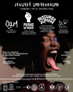O Jeguedê Underground traz a Belo Horizonte um evento poderoso em celebração ao Mês da Consciência Negra. Com uma mistura incendiária de afropunk, dub grindcore, terreiro thrash metal e rap-pretocore, o encontro reunirá bandas de renome que carregam em sua essência a luta, a identidade e a resistência negra.