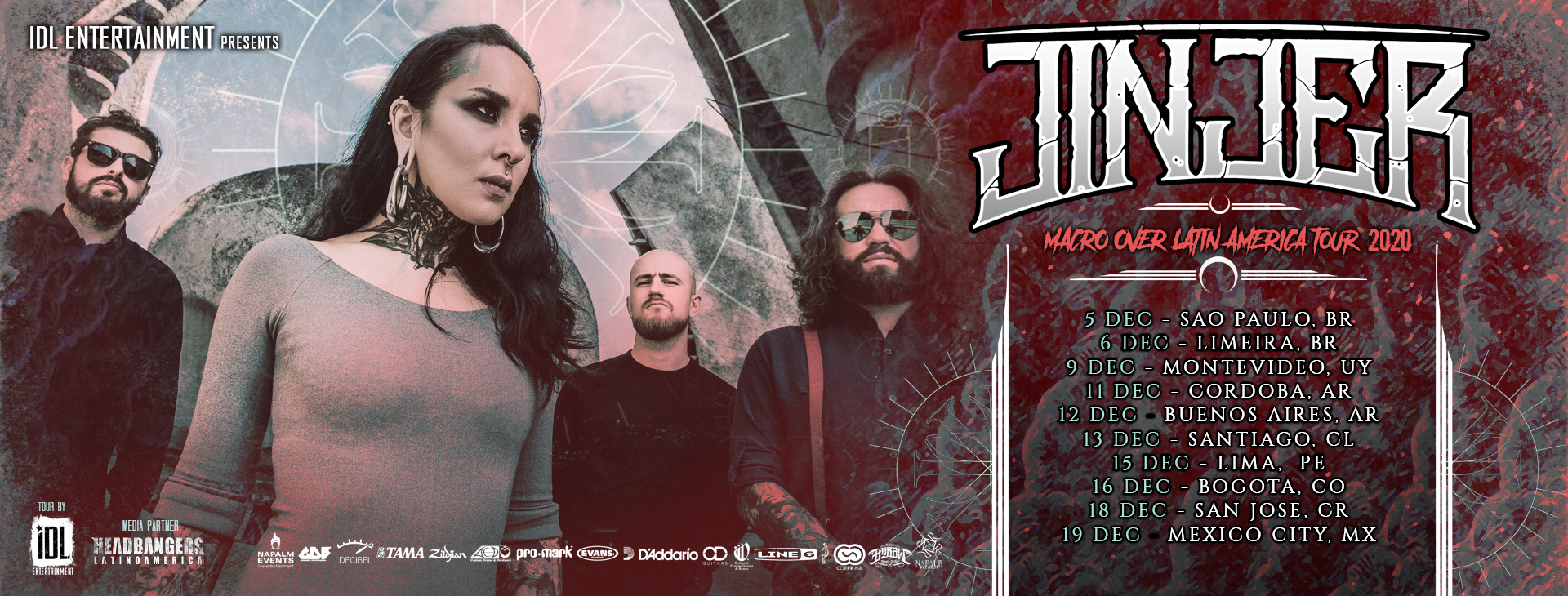A banda ucraniana Jinjer, uma das grandes revelações do Metal mundial, confirmou as novas datas da turnê na América Latina. A turnê já estava acontecendo quando a pandemia do novo coronavírus chegou ao nosso continente, forçando o adiamento de todas as apresentações restantes em países como México e Brasil. O show que estava marcado para 28 de Março na capital paulista, por exemplo, foi adiado, seguindo as medidas preventivas recomendadas pelo Ministério da Saúde, o Governo do Estado de São Paulo e a Prefeitura de São Paulo.