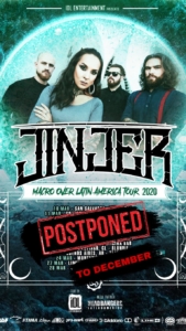 “Dear friends, It’s with very heavy hearts that we have to announce the postponement of our current Latin America tour to December 2020. This COVID-19 Tsunami has been chasing us down for the last few weeks and it finally caught up. We did our very best to save the tour but the local situations are just beyond our control … besides, we definitely do not want to risk the health of our fans nor ourselves any longer. In the current situation we all need to stay united but most importantly we must not panic and need to stay cool … Please take all precautions not to get infected and hopefully our music will keep you in good spirits until this passes. We are looking forward to returning to your amazing continent soon to deliver the JINJER show you all deserve! BE SAFE!!”