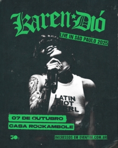A cantora, compositora e multiartista paulista Karen Dió leva para os palcos sua sonoridade através de mensagens que ecoam resistência, liberdade e força feminina. Há três anos, ela deixou a sua vida no Brasil a fim de recomeçar no Reino Unido, influenciada pela cultura e pela possibilidade de liberdade na carreira. A artista retorna ao país para fazer uma apresentação na Casa Rockambole, em São Paulo, no dia 7 de outubro, com ingressos disponíveis a partir do dia 25 de julho, às 12h, no site da Eventim (acesse aqui). Ela também será a responsável pelos shows de abertura da turnê da banda Avenged Sevenfold, que passa pelo Brasil em outubro, em Curitiba e São Paulo. Todas as iniciativas são realizações da 30e, maior companhia brasileira de entretenimento ao vivo.