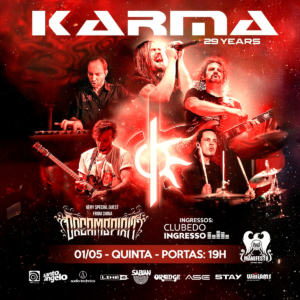 O Karma marcou a cena metal dos anos 90 com álbuns como “Inside the Eyes” e “Leave Now!!!”, conquistando fãs no Brasil e no Japão. O show trará sucessos que fizeram história, como “The Speech” , que contou com a participação de Andre Matos, além de surpresas para os fãs que aguardam esse momento por décadas.