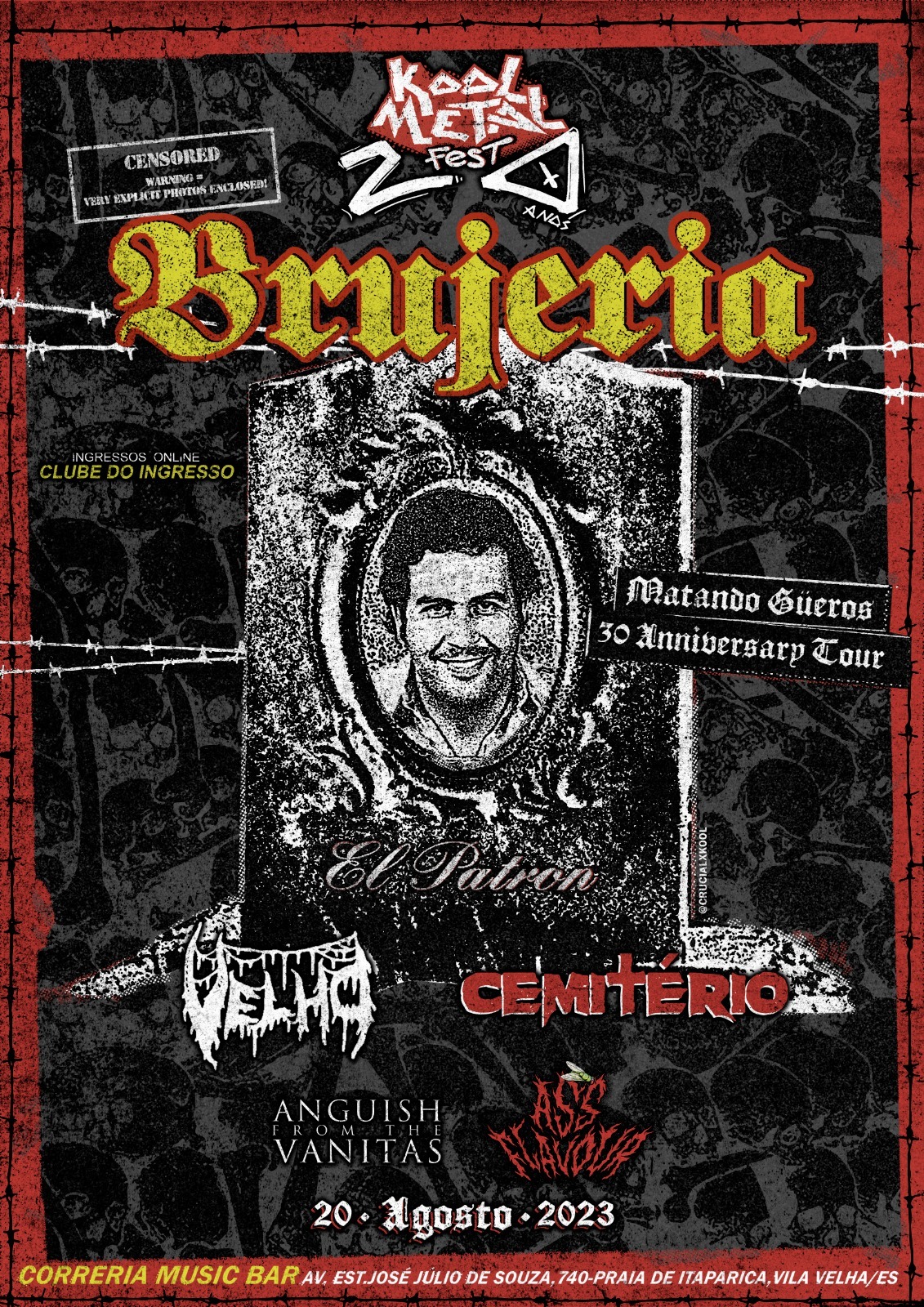 Ingressos já à venda: https://www.clubedoingresso.com/evento/brujeria-vilavelha.