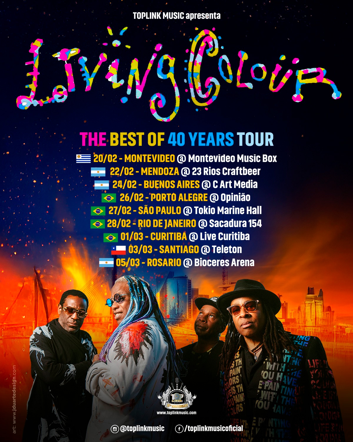O Living Colour deu início à etapa latino-americana da “The Best Of 40 Years Tour” em 20 de fevereiro, com show no Montevideo Music Box, em Montevidéu (Uruguai). A apresentação marcou a largada da turnê que passa por Argentina, Brasil e Chile nesta sequência de datas de 2026. A produção da turnê é da Top Link Music.