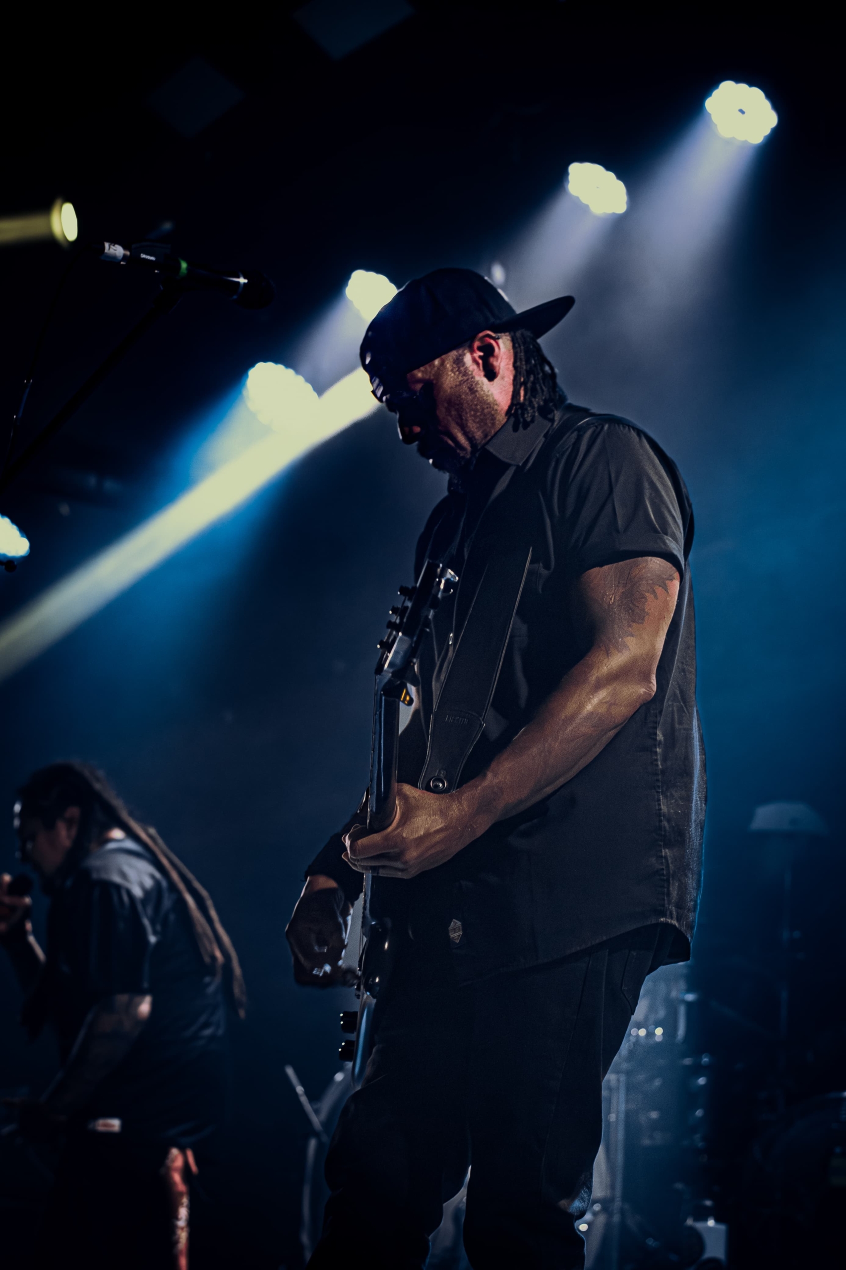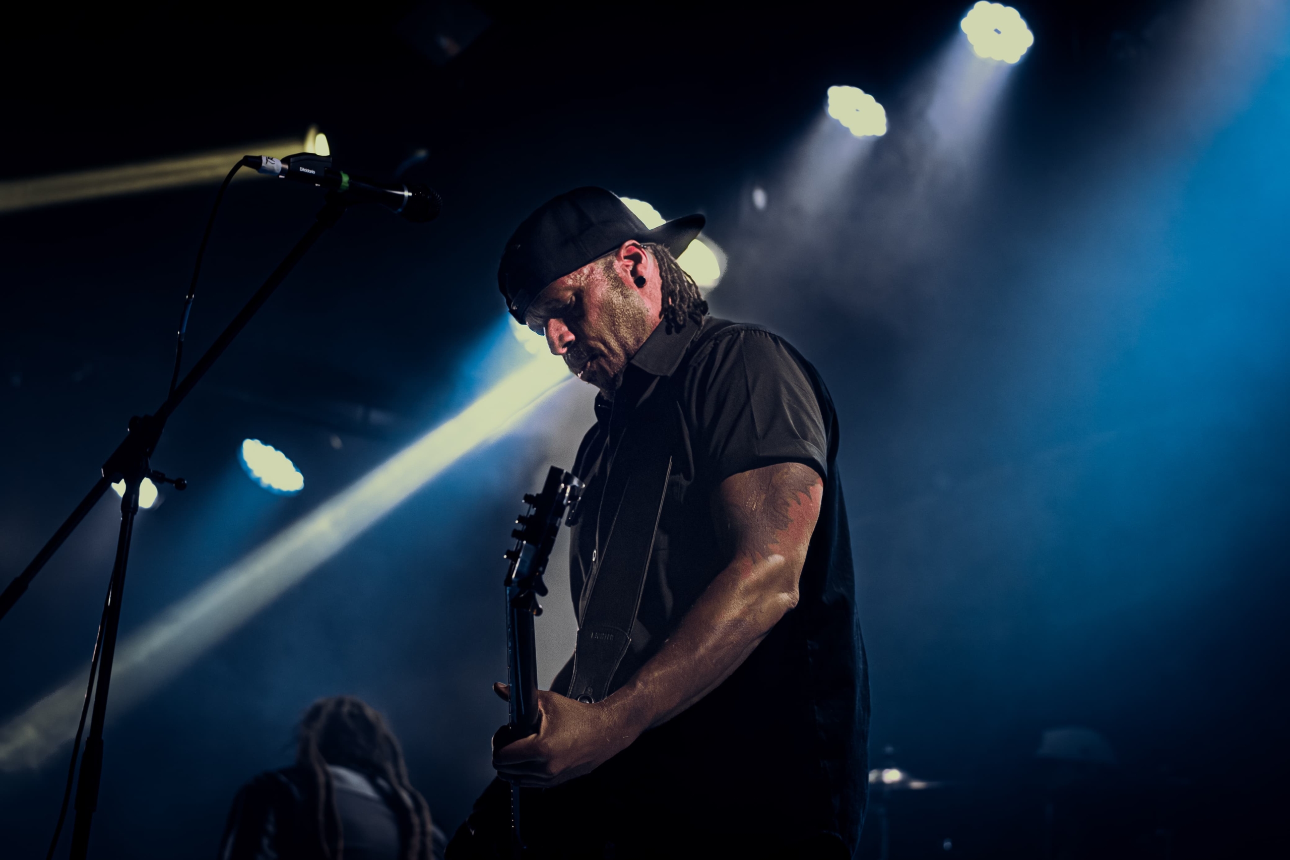 Uma rápida virada de palco e vemos um dos guitarristas do Demon Hunter já preparando as suas coisas para o próximo show, detalhe que, mesmo ele arrumando o seu equipamento, não deixou de dar atenção a algum fã que o chamava, sempre com um sorriso no rosto e uma piadinha para brincar com o público, ponto positivíssimo a ele e a banda.