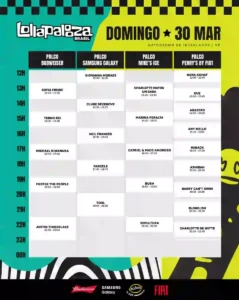 O Lollapalooza Brasil disponibilizou hoje no seu aplicativo oficial os horários dos shows de todos os palcos. Nos dias 28, 29 e 30 de março, o público terá acesso a mais de 70 apresentações. Por meio do app, será possível montar seu calendário pessoal de shows e ter acesso a todas as informações da 12ª edição brasileira do festival, que preenche os 600 mil m² do Autódromo de Interlagos com música de qualidade e momentos que marcam gerações.